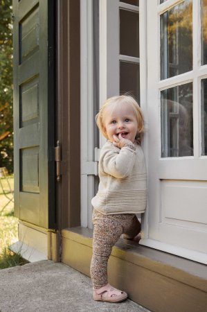 Lækre beige leggings med søde håndtegnede blomster i en skøn bomuldsblanding.