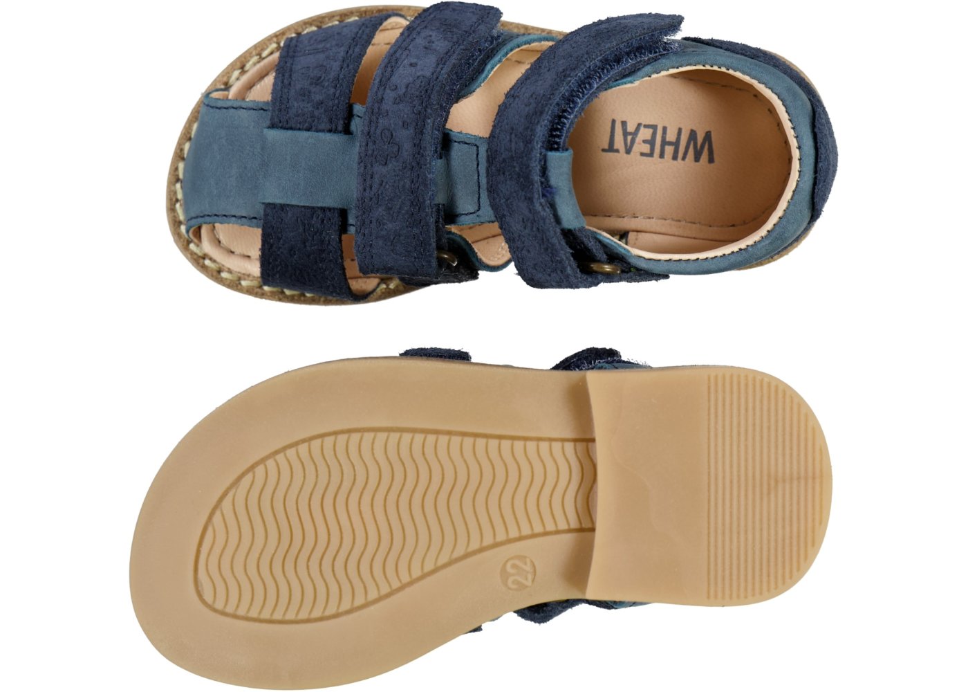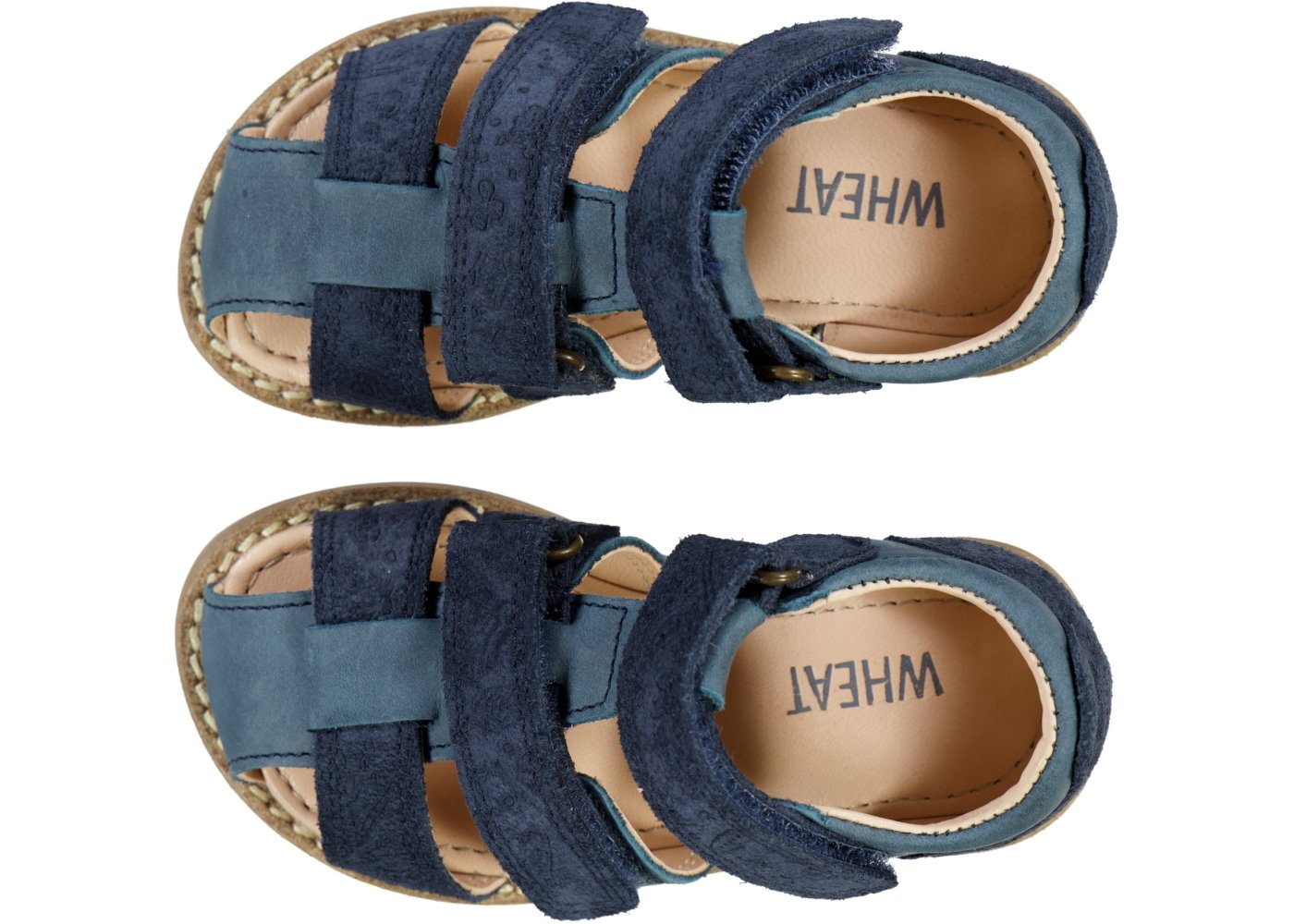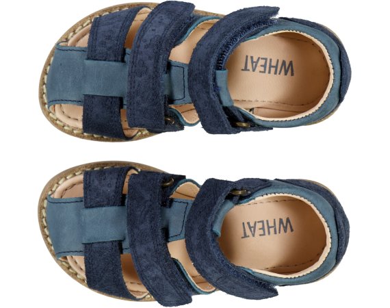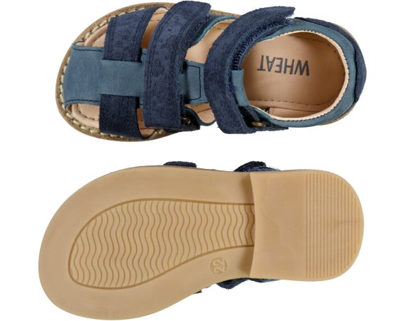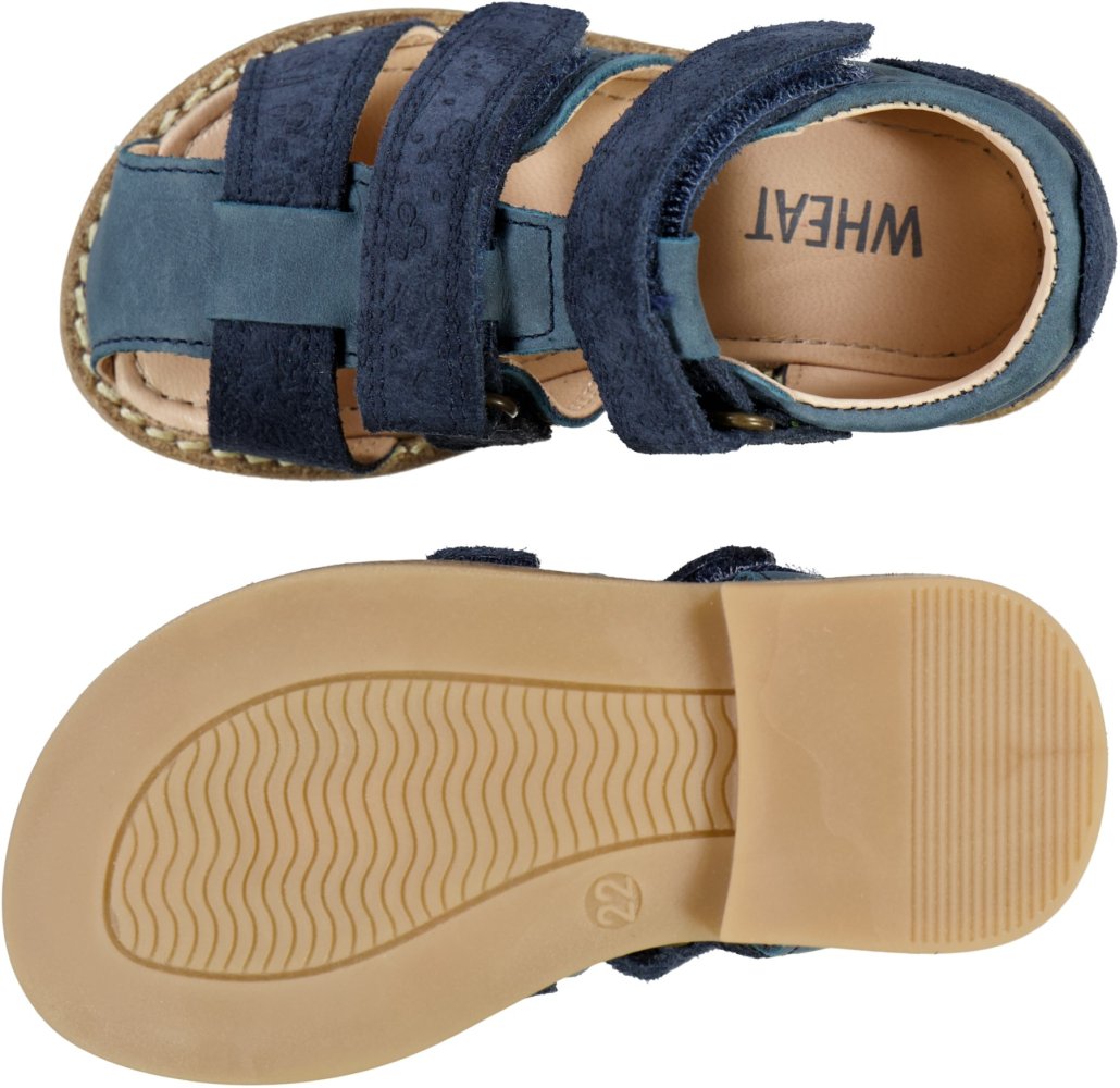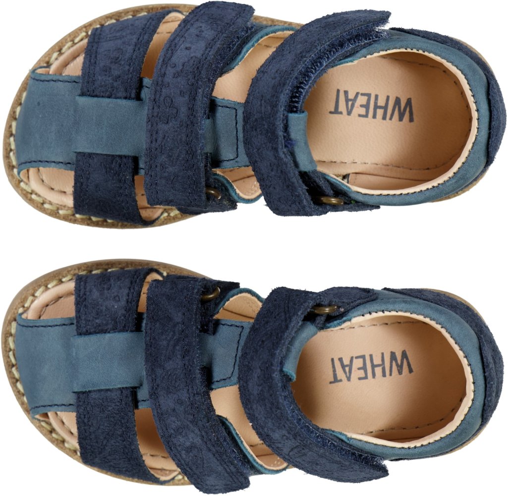 Smarte sandaler med ruskindsdetaljer og præget med print fra Wheat.