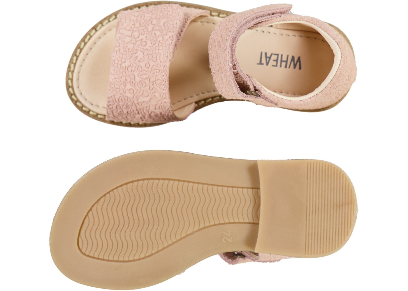 Yndige ruskinds sandaler med et flot præget print fra Wheat.