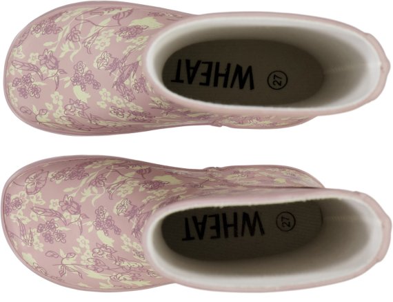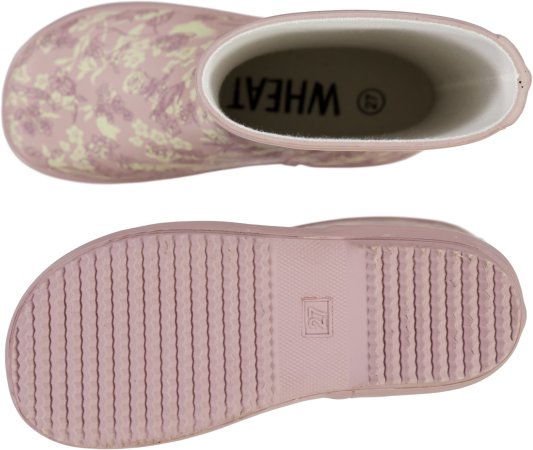 Gummistøvlens ydersål har et kraftigt, rillet mønster som gør den skridsikker og giver et godt fodfæste. Støvlen har et fint Wheat-logo refleks på hælkapper.