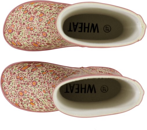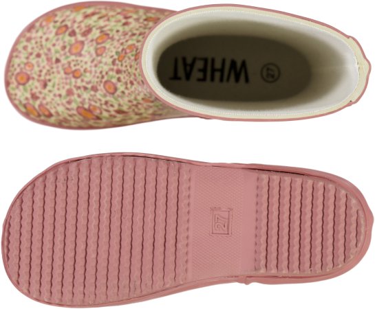Gummistøvlens ydersål har et kraftigt, rillet mønster som gør den skridsikker og giver et godt fodfæste. Støvlen har et fint Wheat-logo refleks på hælkapper.