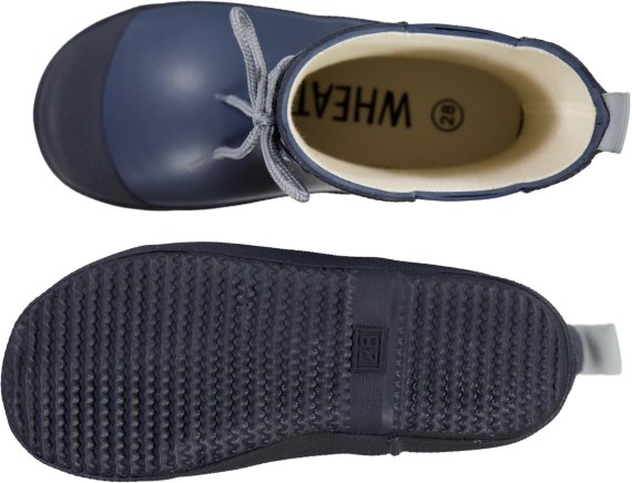 Gummistøvlens ydersål har et kraftigt, rillet mønster som gør den skridsikker og giver et godt fodfæste. Støvlen har et fint Wheat-logo refleks på hælkapper.