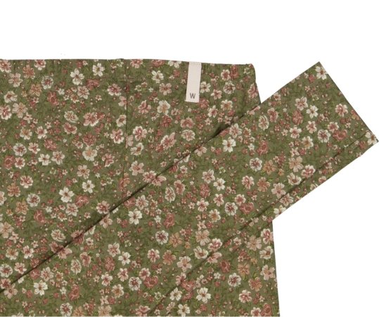 Lækre grønne jersey leggings fyldt med håndtegnede, smukke blomster i hvide og rosa nuancer.