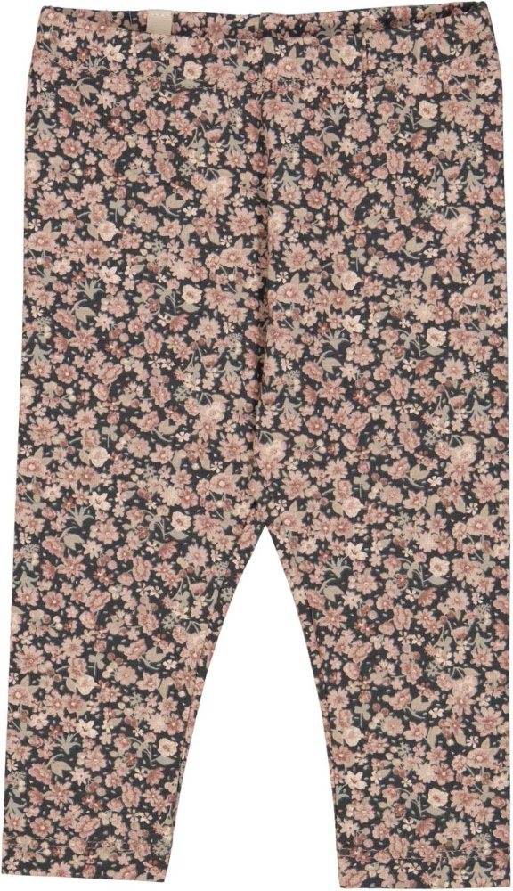 Lækre sorte leggings med flot håndtegnet blomsterprint i lyse nuancer.