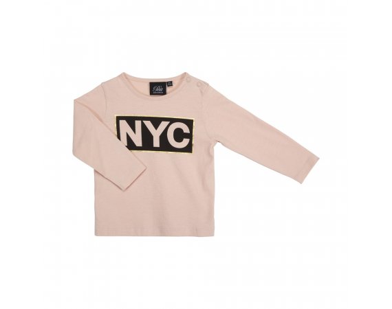 Smart t-shirt i rosa farve med guld, sort og hvidt NYC print