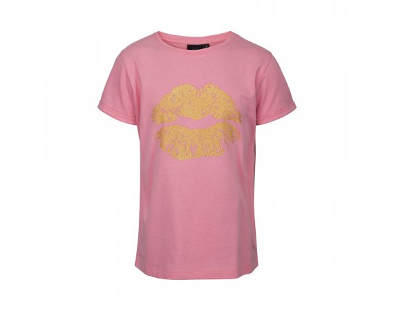 Kortærmet-shirt i en flot koral pink farve med guld print af en fyldig mund fra Petit by Sofie Schnoor