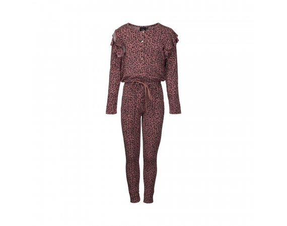 Jumpsuit i rosa med leopardprint og flæser på skuldre fra Petit by Sofie Schnoor