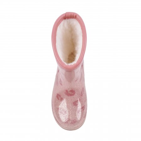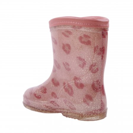 Gummistøvlerne er i en flot rosa farve med leopard print med glimmer.