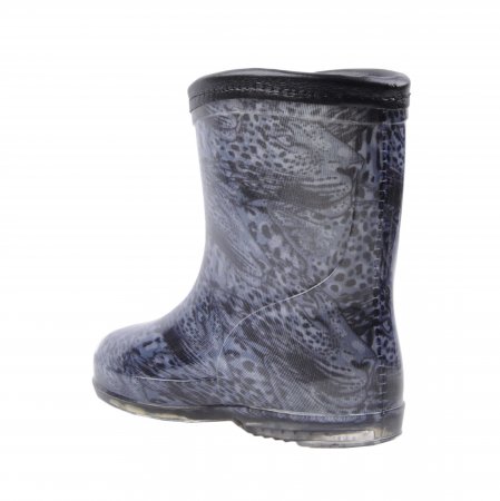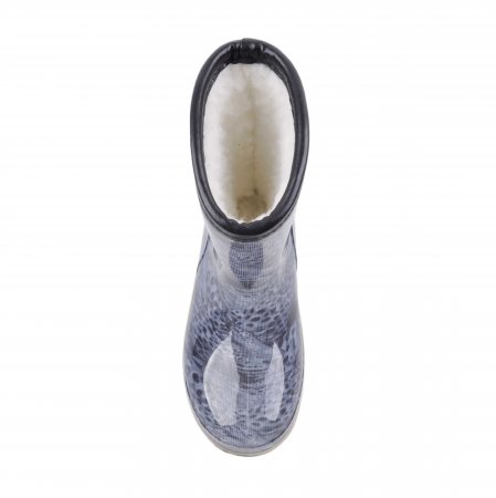 Gummistøvlerne er i en flot blå farve med leopard print.