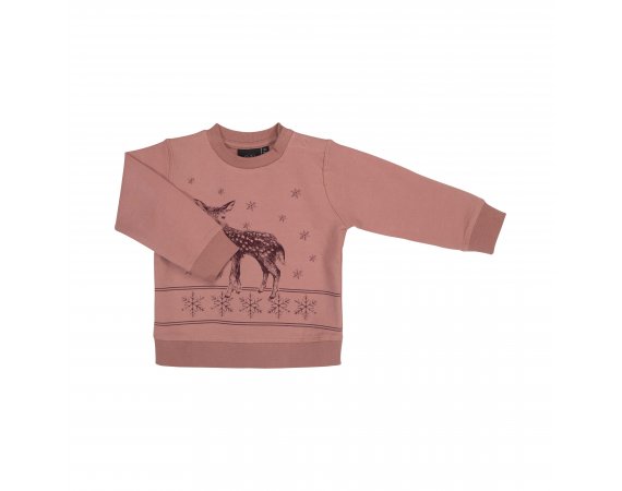 Sej sweatshirt fra Sofie Schnoor med flot dådyr print og snefnug på brystet