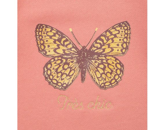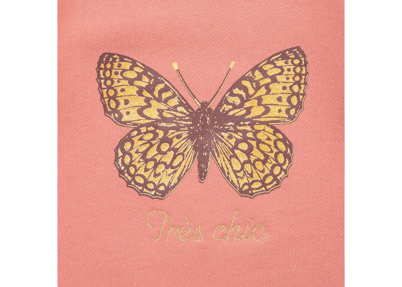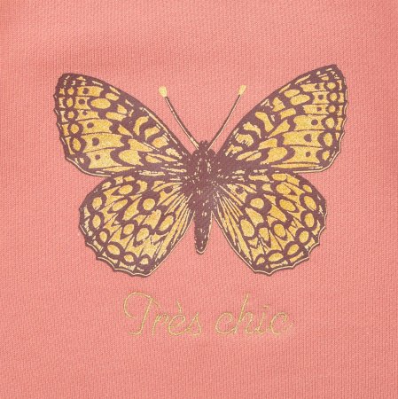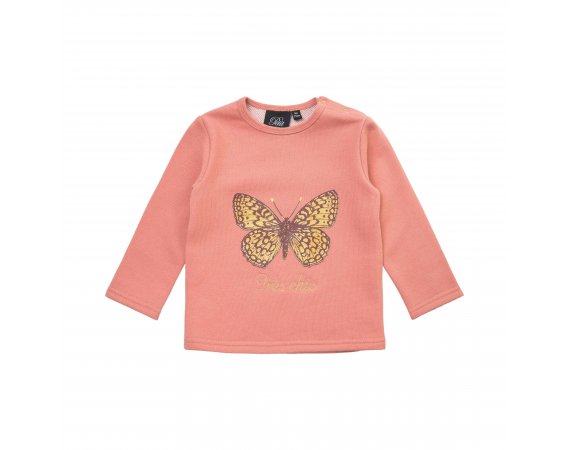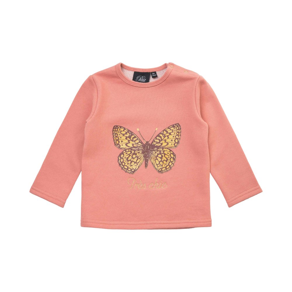 Lækker rosa sweatshirt fra Petit by Sofie Schnoor.Trøjen har lange ærmer, en fin sommerfugl foran og er i en skøn strækbar kvalitet. Trøjen lukkes med trykknapper på venstre skulder.