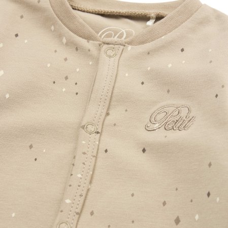 Sød sandfarvet jumpsuit med fødder og lange ærmer fra Petit by Sofie Schnoor.