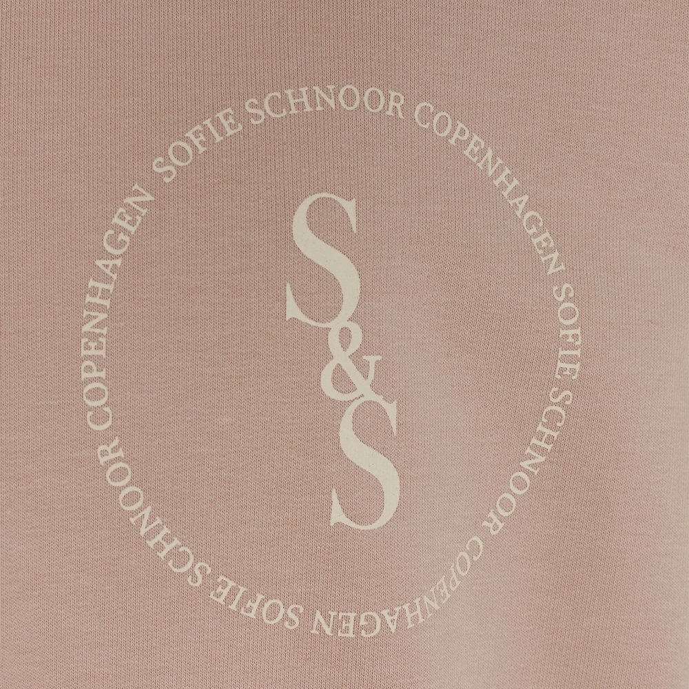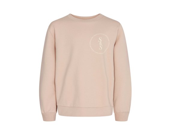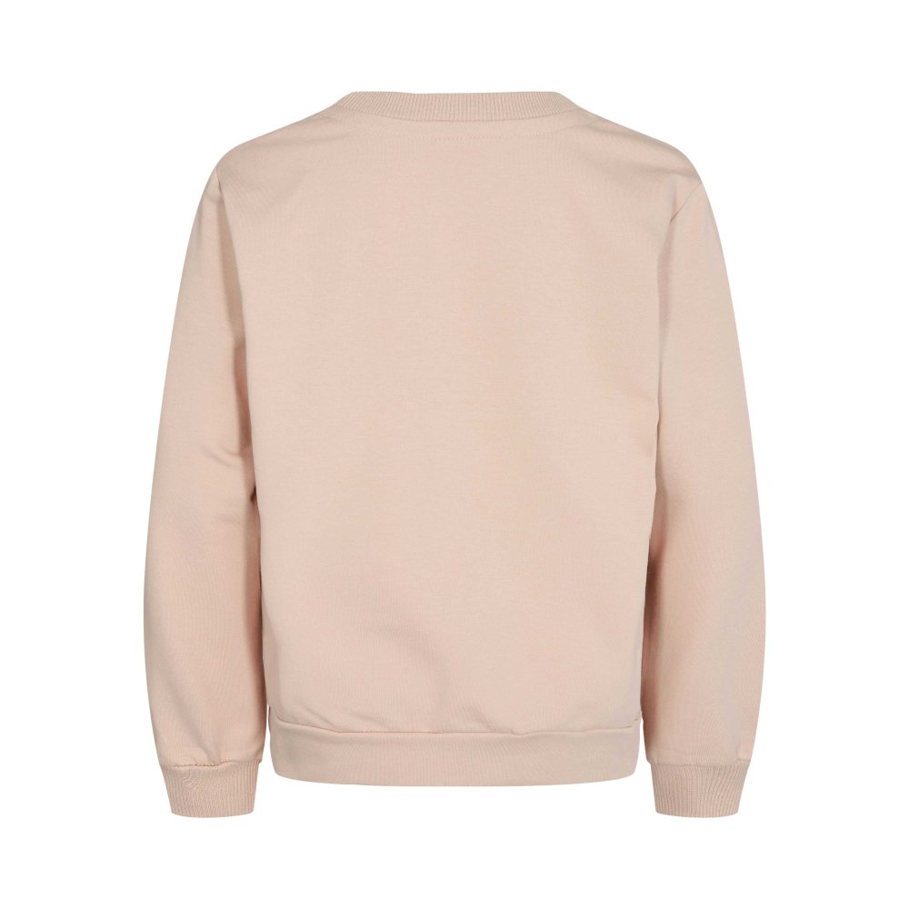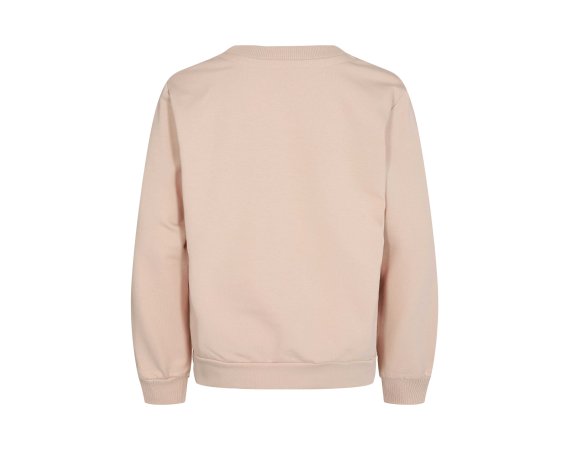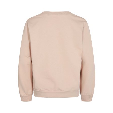Super sød rosa sweatshirt med beige tekst foran.Sweatshirten har ribkanter i alle åbninger.Der fås bukser i samme skønne farve.