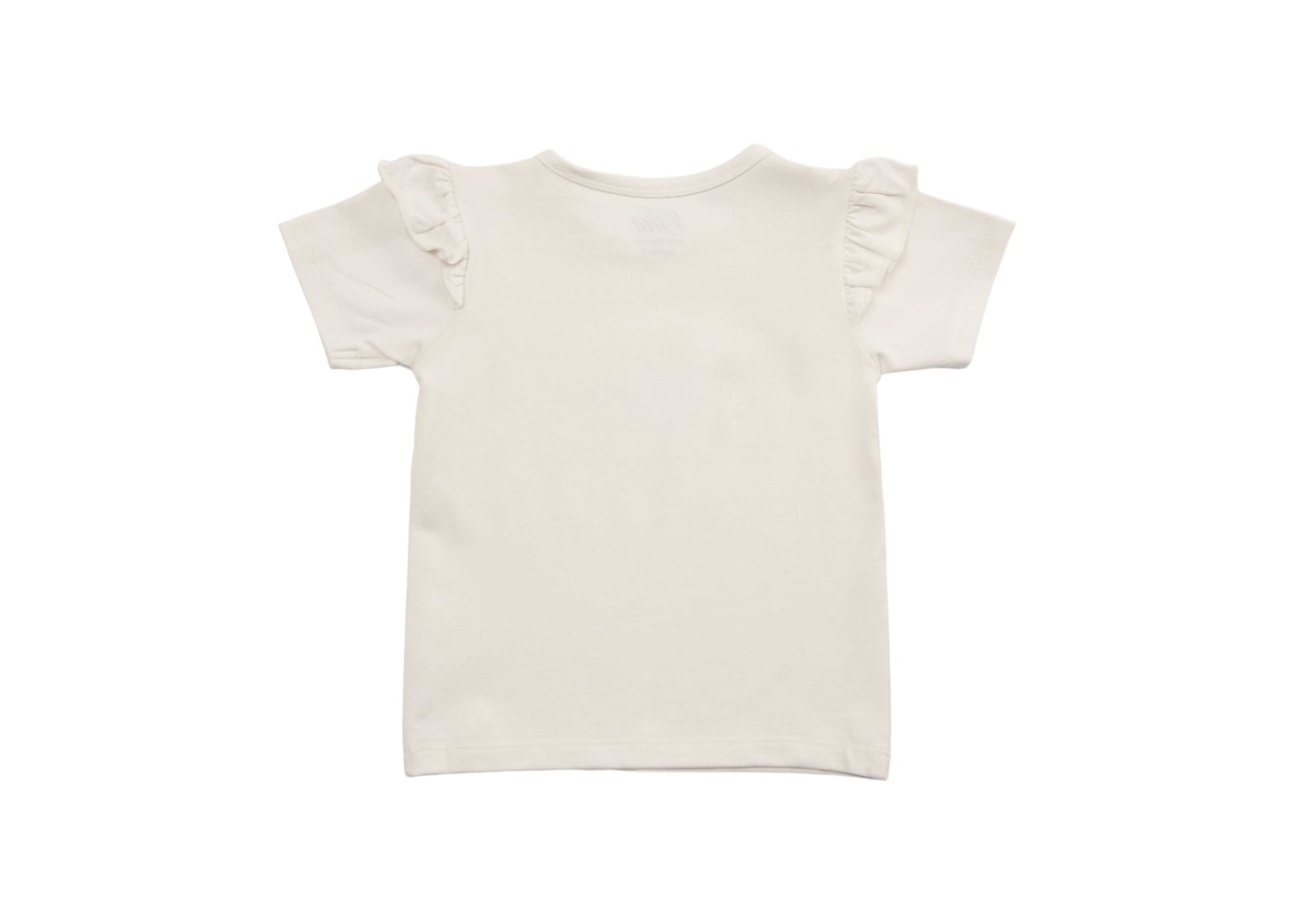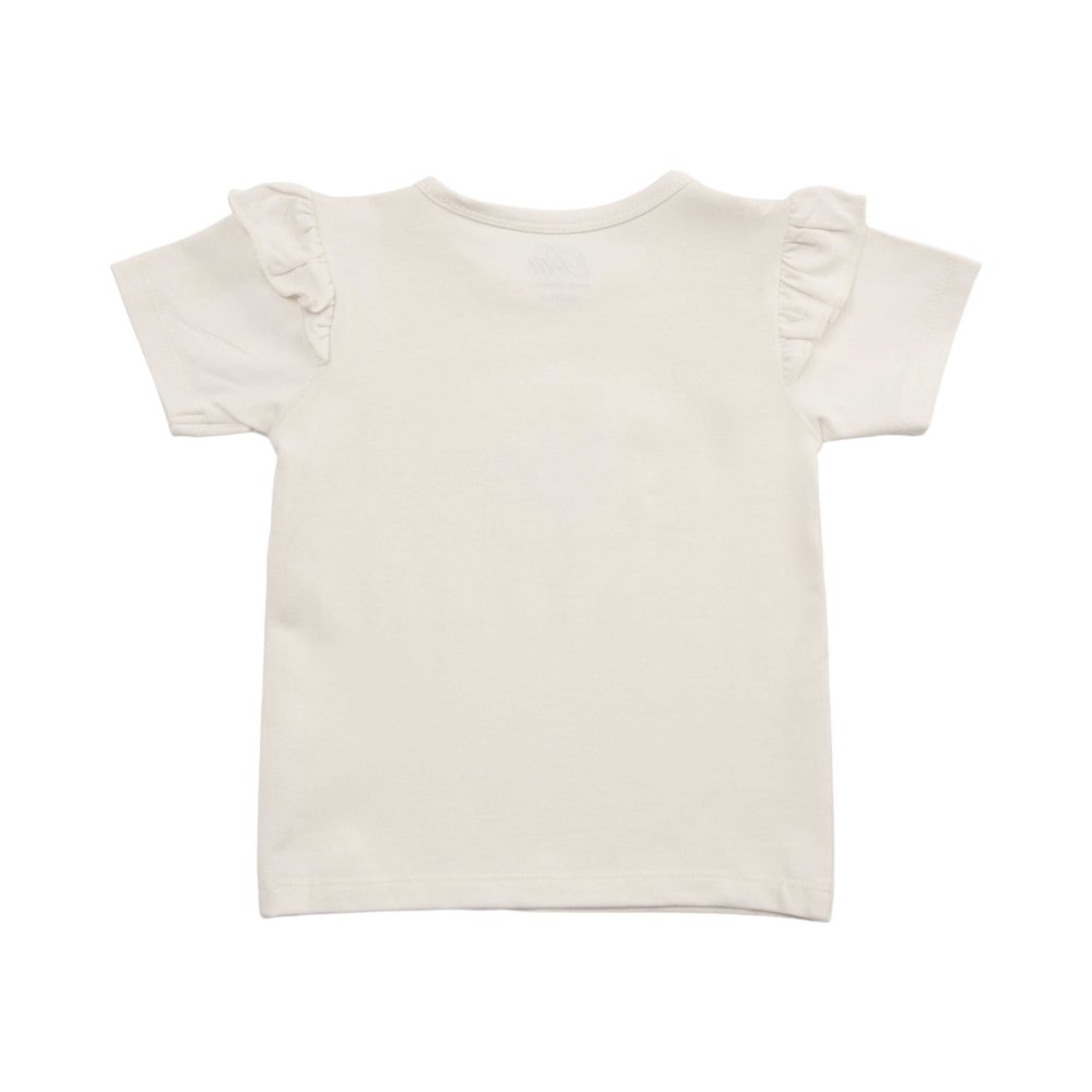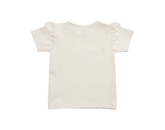 T-shirten har ribkant i halsudskæring og fine flæsekanter på skuldre.