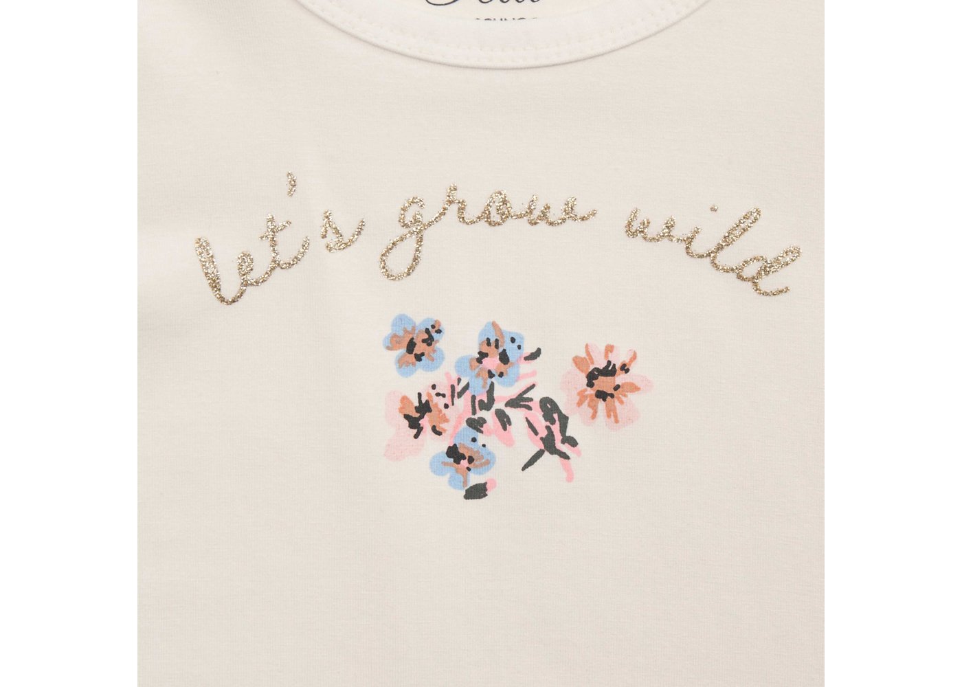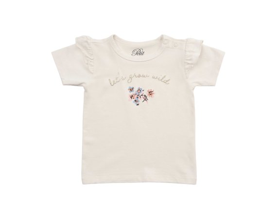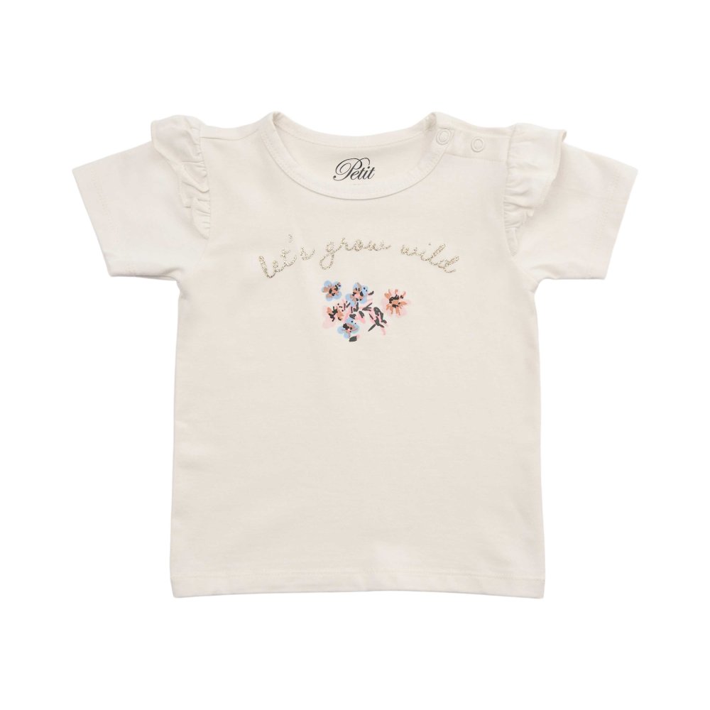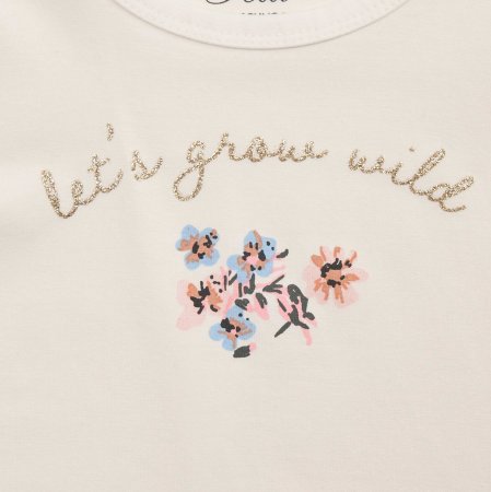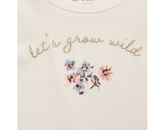 Bredt anvendelig kortærmet t-shirt i hvid med blomster foran fra Petit by Sofie Schnoor.