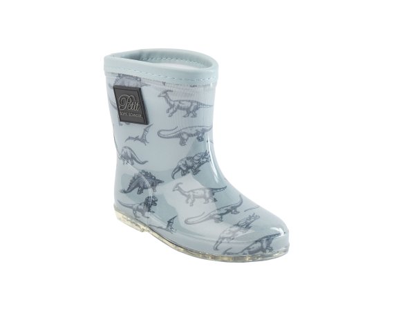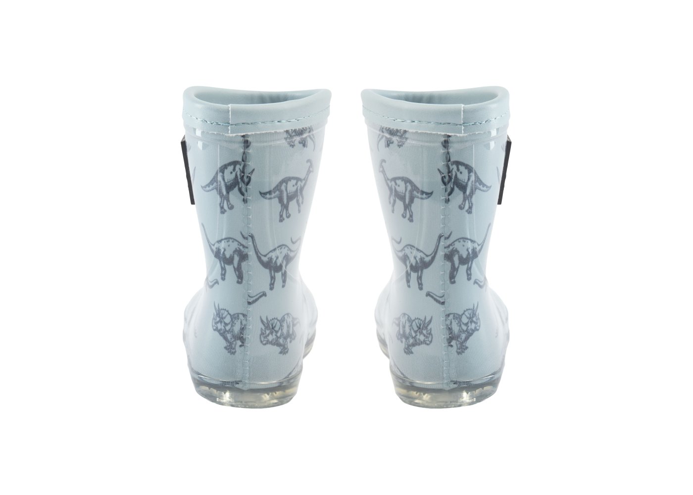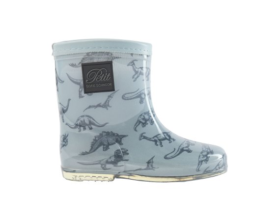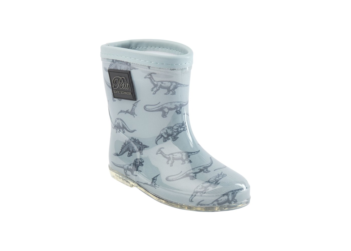 Smarte blå gummistøvler med dinosaur print fra Petit by Sofie Schnoor.