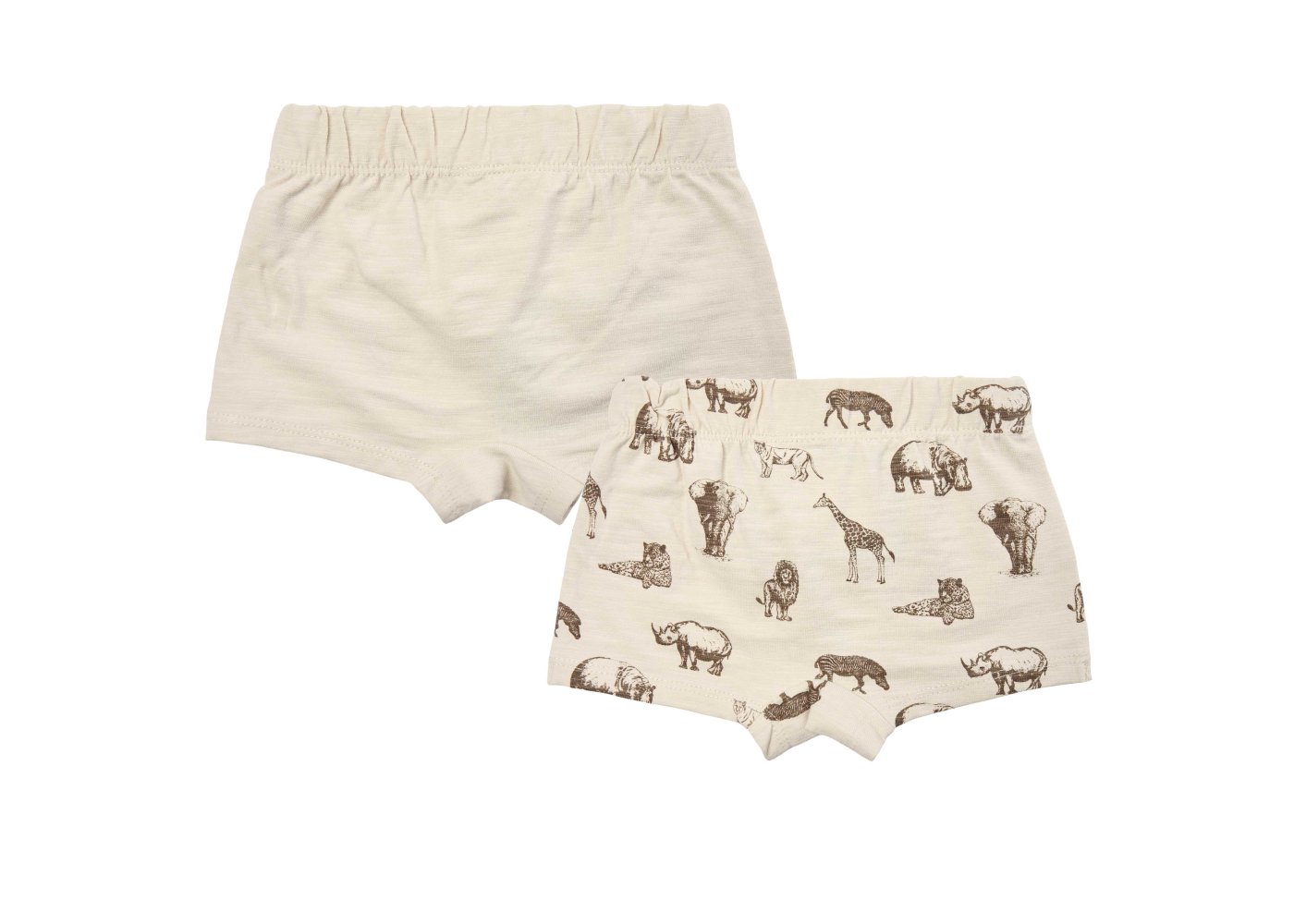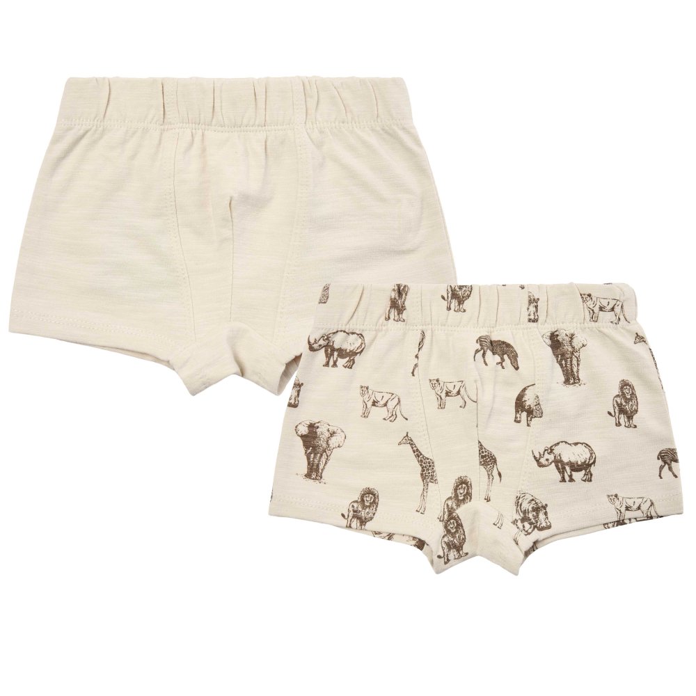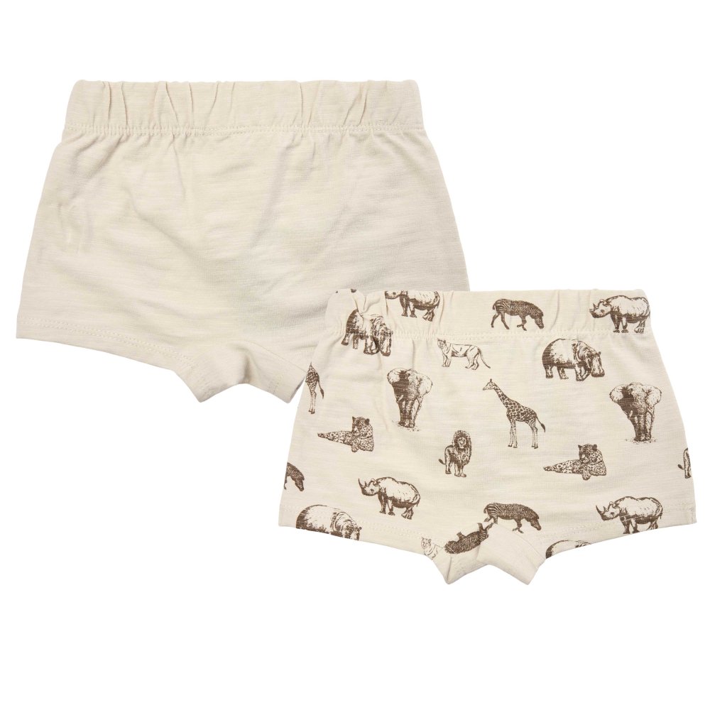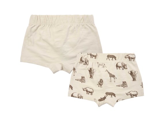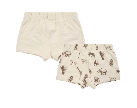 Her får du to underbukser fremstillet i en lækker og strækbar bomuldskvalitet. Det ene par er ensfarvet, og det andet har fint dyreprint.