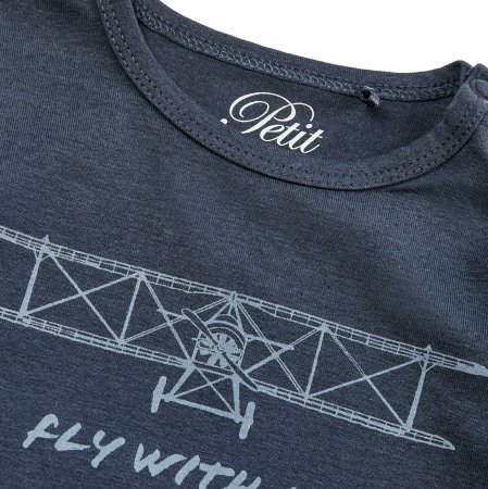 Fin langærmet t-shirt med fly foran fra Petit by Sofie Schnoor.T-shirten har en fast ribkant i halsudskæring og lukkes med trykknapper på venstre skulder.