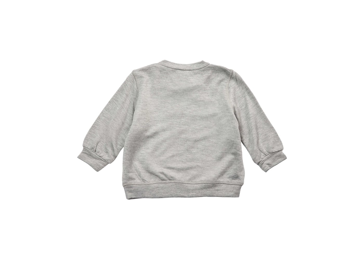 Sweatshirten har ribkanter i alle åbninger, og lukkes med trykknapper på venstre skulder.