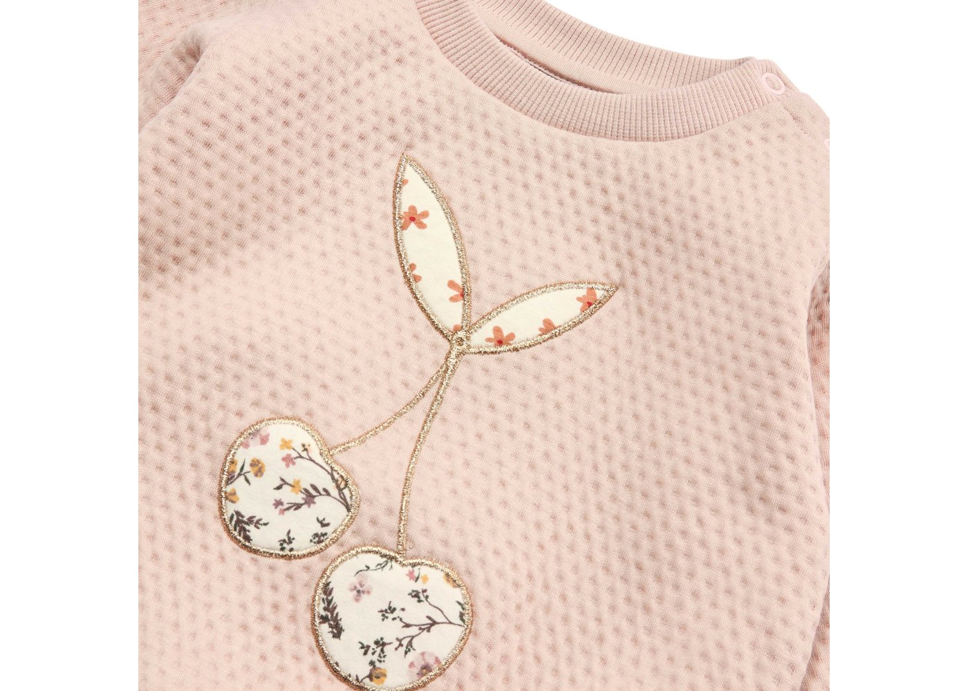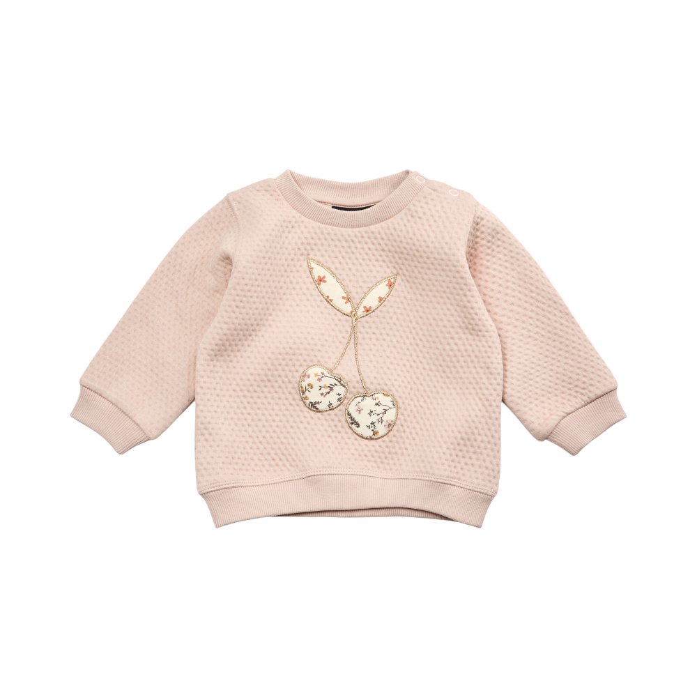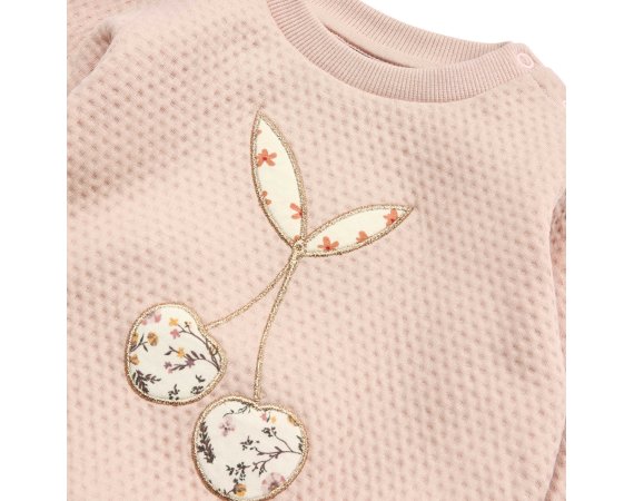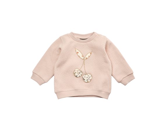 Yndig sweatshirt med vaflet struktur og fint kirsebær med guldkant foran.