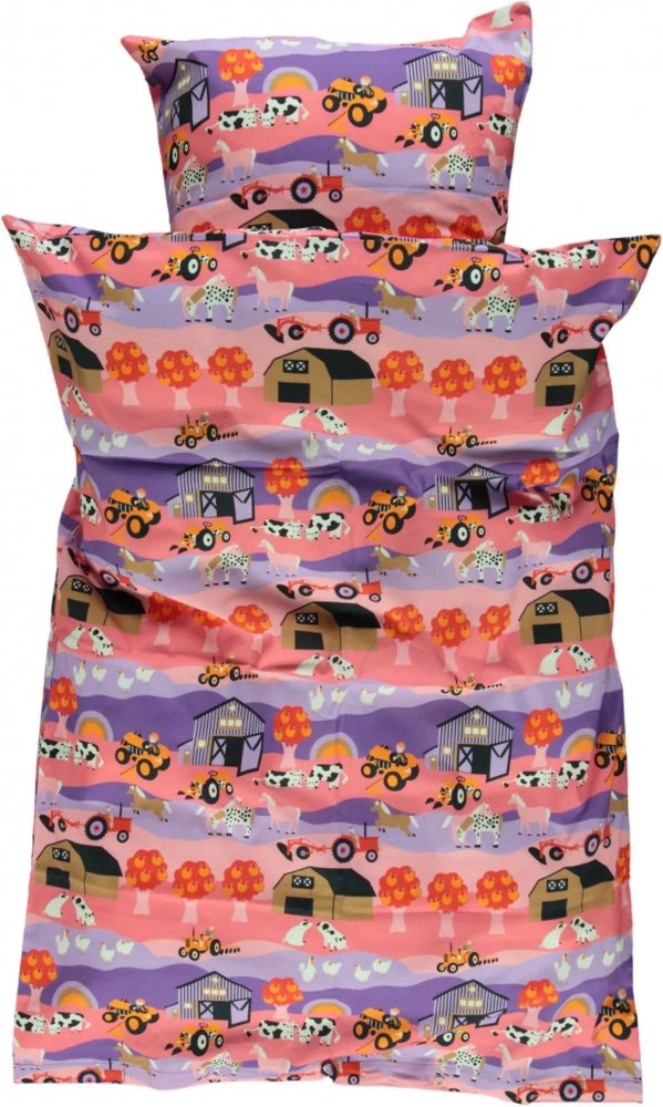 Smukt babysengesæt fra Småfolk med landskabsmotiv.Sengesættet leveres i en lille stof pose med hank, der efterfølgende fint kan anvendes til gymnastik eller svømmetøj.