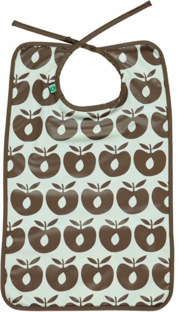 Stor spisesmæk som lukkes i nakken med trykknapper.